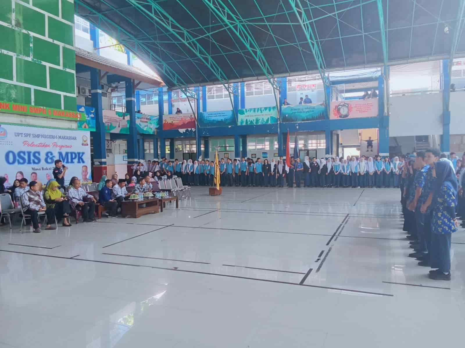 Makassar, Mapress.co.id – UPT SPF SMP Negeri 6 Makassar resmi melantik pengurus baru Organisasi Siswa Intra Sekolah (OSIS) dan Majelis Perwakilan Kelas (MPK) periode 2025–2026, Kamis (25/09/2025).