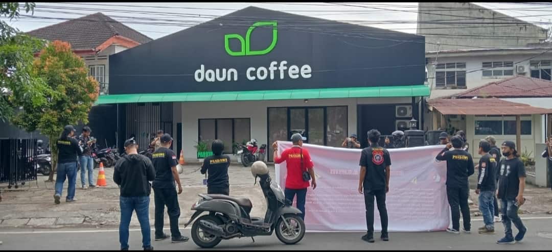 Makassar, Mapress.co.id – Sebuah aksi demonstrasi dilakukan oleh Organisasi Kemasyarakatan (Ormas) Pandawa Pattingalloang, di depan Cafe Daun Coffee yang terletak di Jalan Gagak, Kecamatan Mariso, Kota Makassar, Sabtu (22/02/2025).