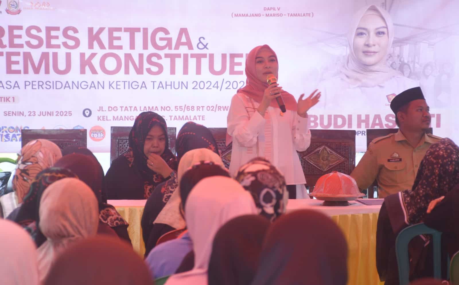 Makassar, Mapress.co.id – Anggota DPRD Kota Makassar dari Fraksi Partai Gerindra, Budi Hastuti menggelar reses dan temu konstituen masa persidangan Ketiga tahun sidang 2024/2025, di Dg. Tata Lama, Kelurahan Mangasa, Kecamatan Tamalate, Senin (23/06/2025).