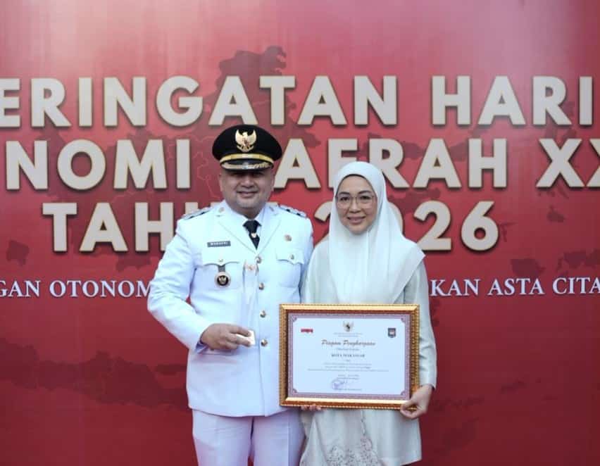 Penghargaan tersebut, diserahkan langsung oleh Wakil Menteri Dalam Negeri RI, Bima Arya Sugiarto, kepada Wali Kota Munafri Arifuddin dalam Upacara Peringatan Hari Otonomi Daerah ke-XXX tahun 2026 yang digelar di Plaza Kemendagri, Senin (27/04/2026).