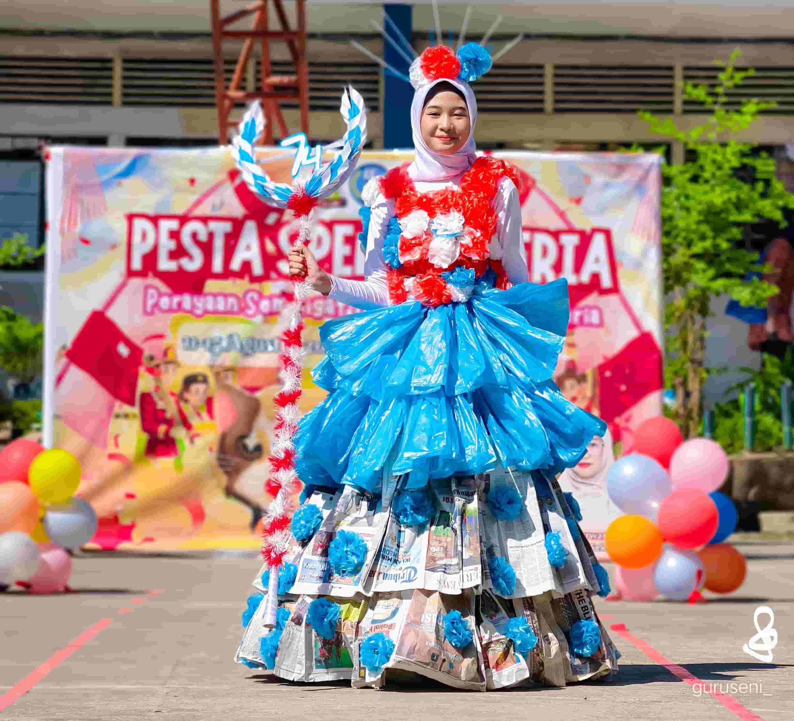 Kostum ini sepenuhnya hasil kreativitas siswa yang sejalan dengan program sekolah Adiwiyata.