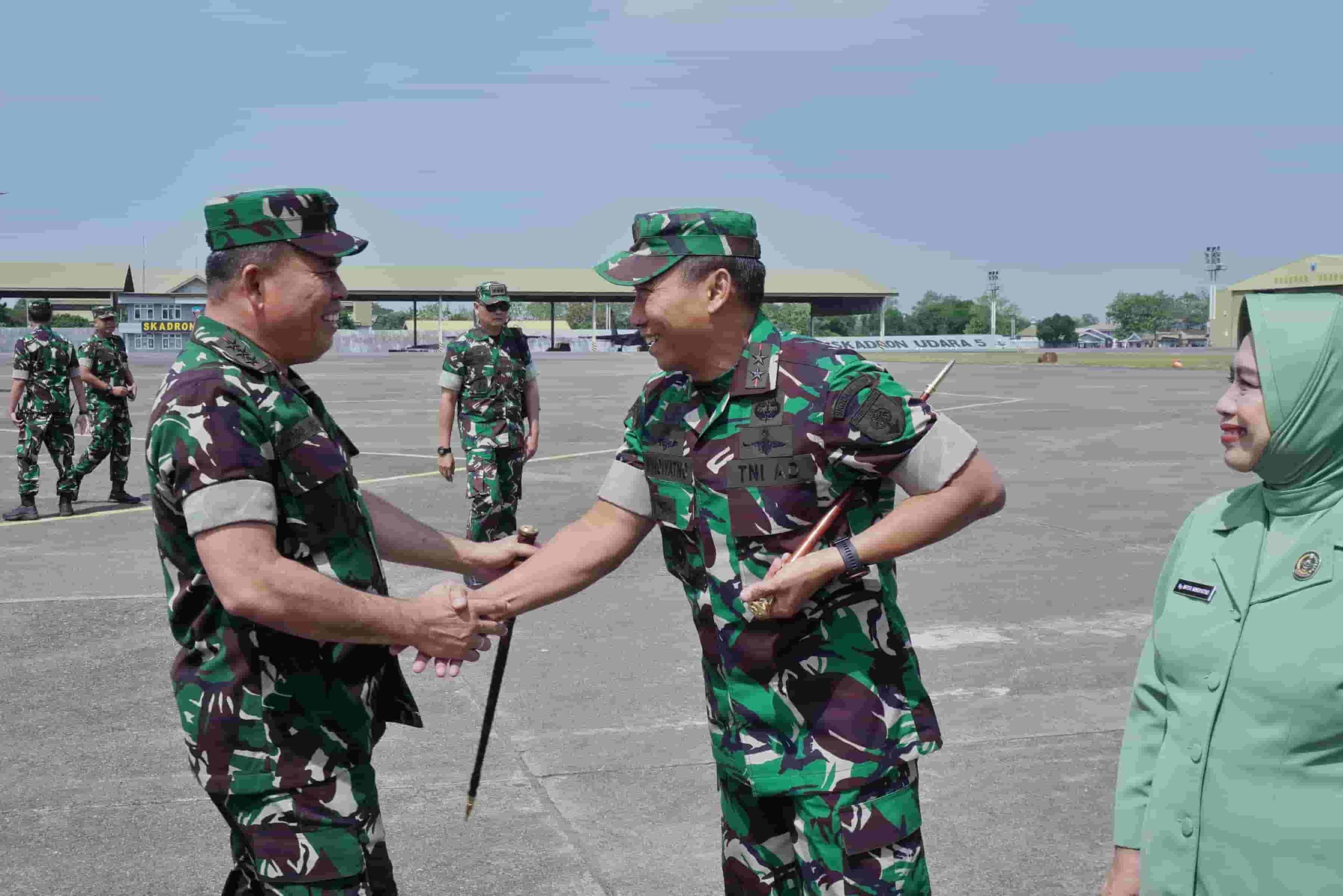 Makassar, Mapress.co.id – Pangdam XIV/Hasanuddin, Mayjen TNI Windiyatno, bersama Ketua Persit KCK PD XIV/Hasanuddin, Ny. Infita Windiyatno menyambut kedatangan Pangkogabwilhan II, Marsekal Madya TNI M. Khairil Lubis, didampingi Ketua IKKT PWA Cabang BS III, Ny. Sondang Khairil Lubis dan rombongan, di Baseops Lanud Sultan Hasanuddin, Kecamatan Mandai, Kabupaten Maros, Sulawesi Selatan, Selasa (22/07/2025).
