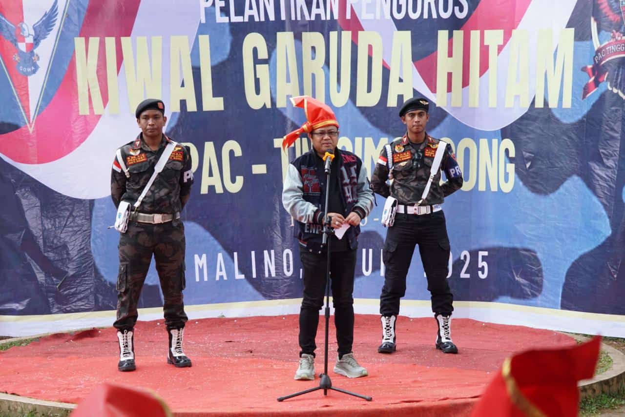 Gowa, Mapress.co.id – Wakil Bupati Gowa, Darmawangsyah Muin menghadiri pelantikan pengurus Dewan Pimpinan Cabang (DPC) Komando Inti Pengawal (Kiwal) Garuda Hitam Tinggimoncong yang digelar di Kawasan Wisata Hutan Pinus, Malino, Kecamatan Tinggimoncong, Jum’at (27/06/2025).