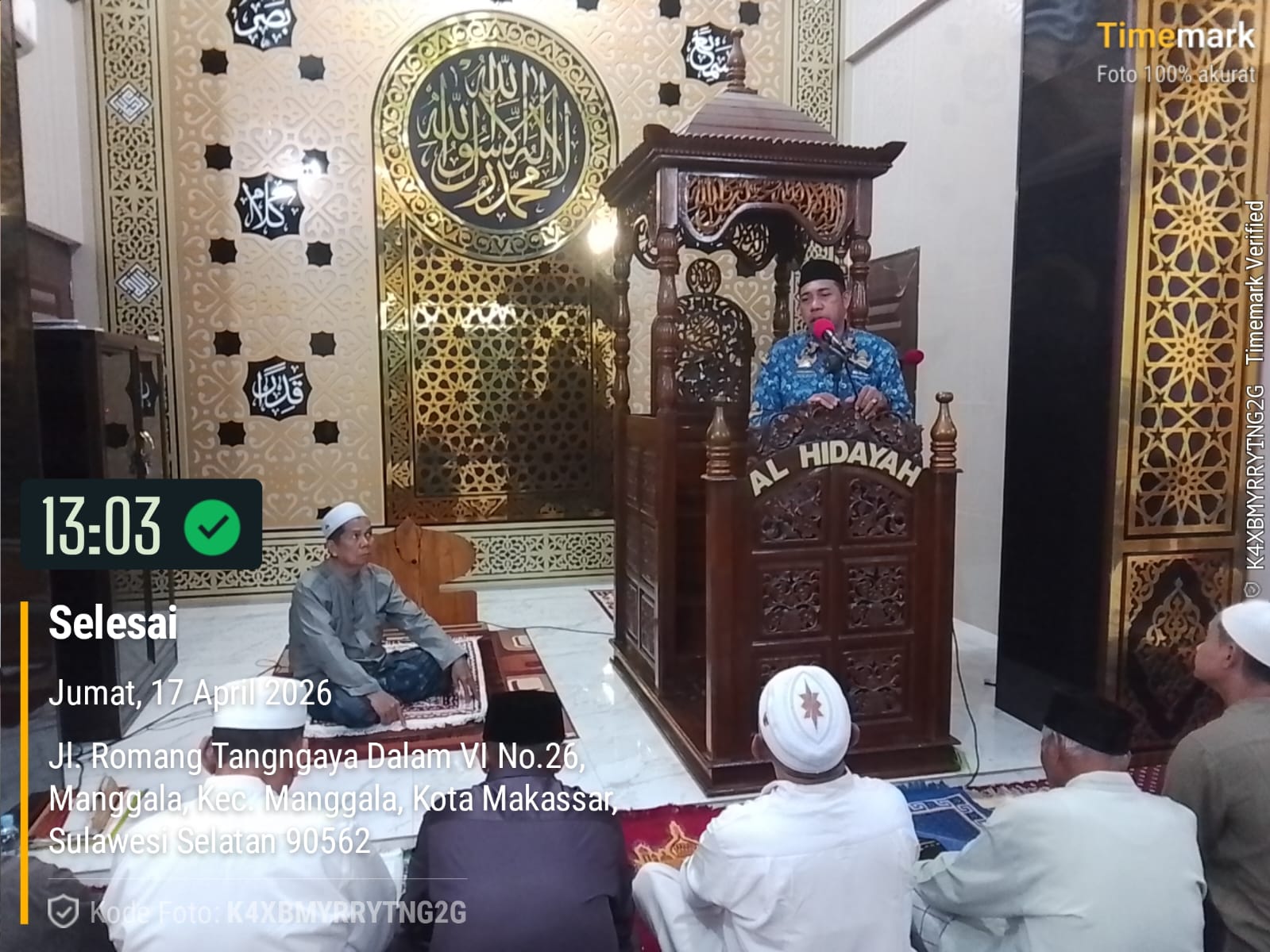 Makassar, Mapress.co.id – Sampah adalah masalah kita bersama untuk mengatasinya. Kalau dikelola dengan baik akan bernilai ekonomis. Hal itu diungkapkan Lurah Manggala, Syukri Abbas, S.Sos, M.Si, di depan jamaah Mesjid Al-Hidayah yang dihadiri Ketua Mesjid Andi Pasamangi Wawo, usai salat Jumat (17/04/2026).