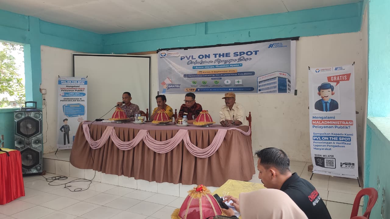 Barru, Mapress.id – Ombudsman RI Perwakilan Sulawesi Selatan menggelar kegiatan “PVL On The Spot” di Kantor Desa Gattareng, Kecamatan Pujananting, Kabupaten Barru, Kamis (11/09/2025).