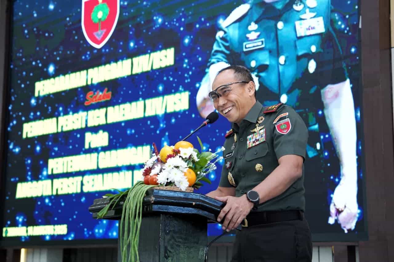 Makassar, Mapress.co.id – Selaku Pembina Persit, Pangdam XIV/Hasanuddin, Mayjen TNI Windiyatno memberikan arahan pada Pertemuan Gabungan Persit Kartika Chandra KCK sejajaran PD XIV/Hasanuddin, bertempat di Balai Pertemuan Hasanuddin (BPH) Makodam, Jalan Urip Sumoharjo, Kota Makassar, Kamis (14/08/2025).