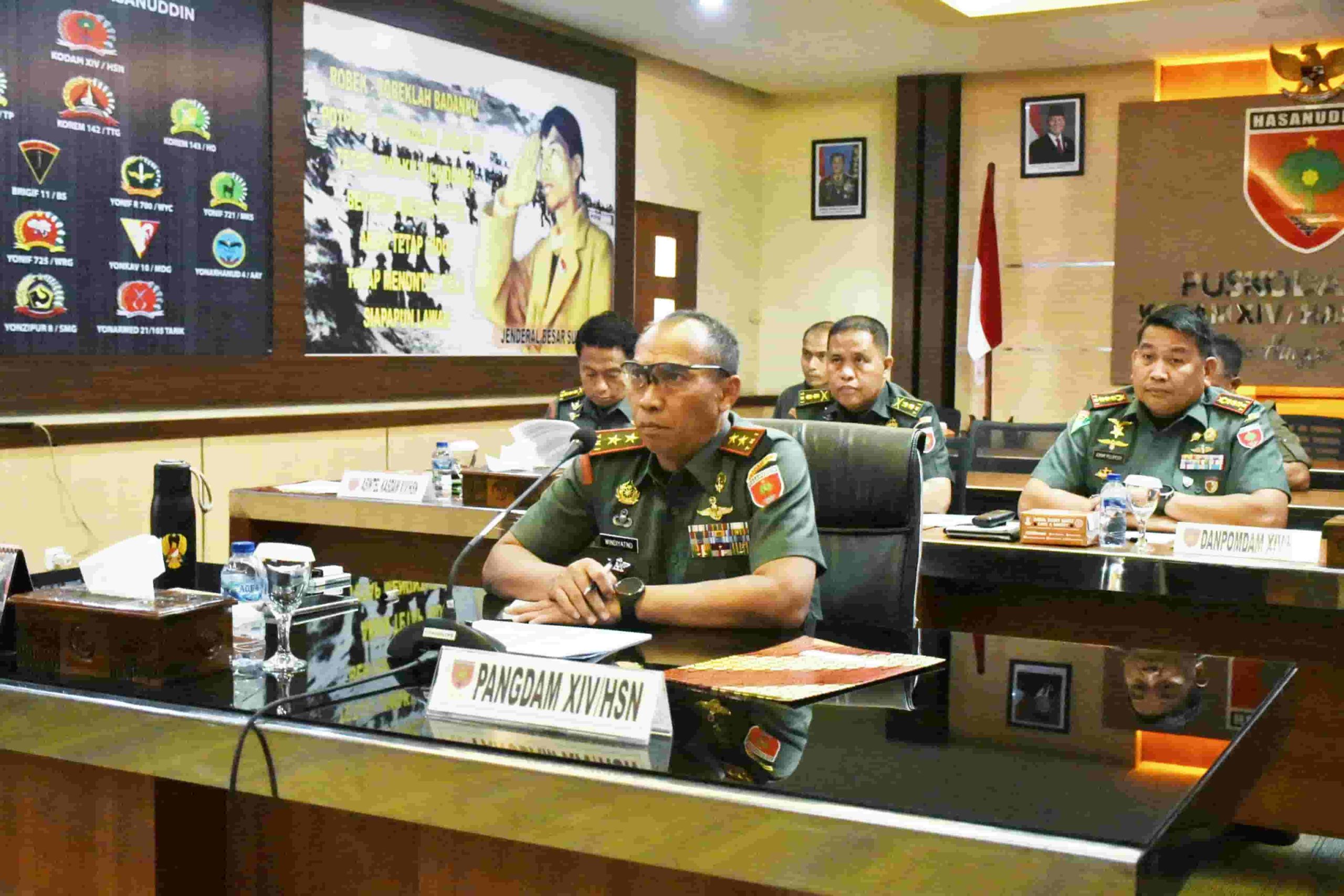 Makassar, Mapress.co.id – Pangdam XIV/Hasanuddin, Mayjen TNI Windiyatno didampingi sejumlah Pejabat Utama (PJU) Kodam mengikuti Rapat Koordinasi (Rakor) Penanganan Judi Online dilingkungan TNI secara virtual, yang dipimpin langsung oleh Inspektorat Jenderal TNI (Itjen TNI), Letjen TNI Muhammad Saleh Mustafa, bertempat di Ruang Puskodalops Makodam, Jalan Urip Sumoharjo, Kota Makassar, Kamis (19/06/2025).