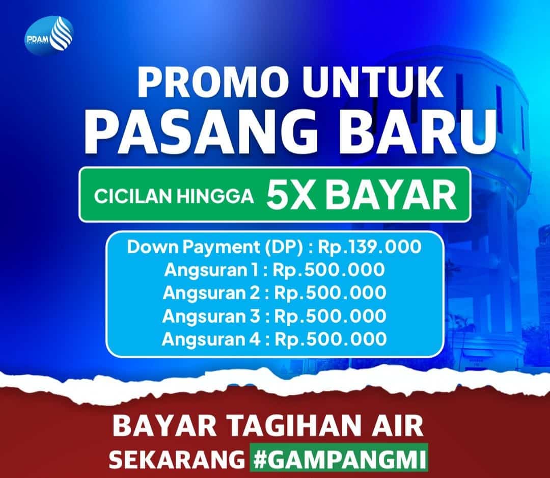 “Kami ingin mempermudah masyarakat dalam mendapatkan akses air bersih. Promo ini memungkinkan pelanggan baru hanya membayar uang muka sebesar Rp139.000, kemudian mencicil sebesar Rp500.000 sebanyak empat kali.” jelasnya.