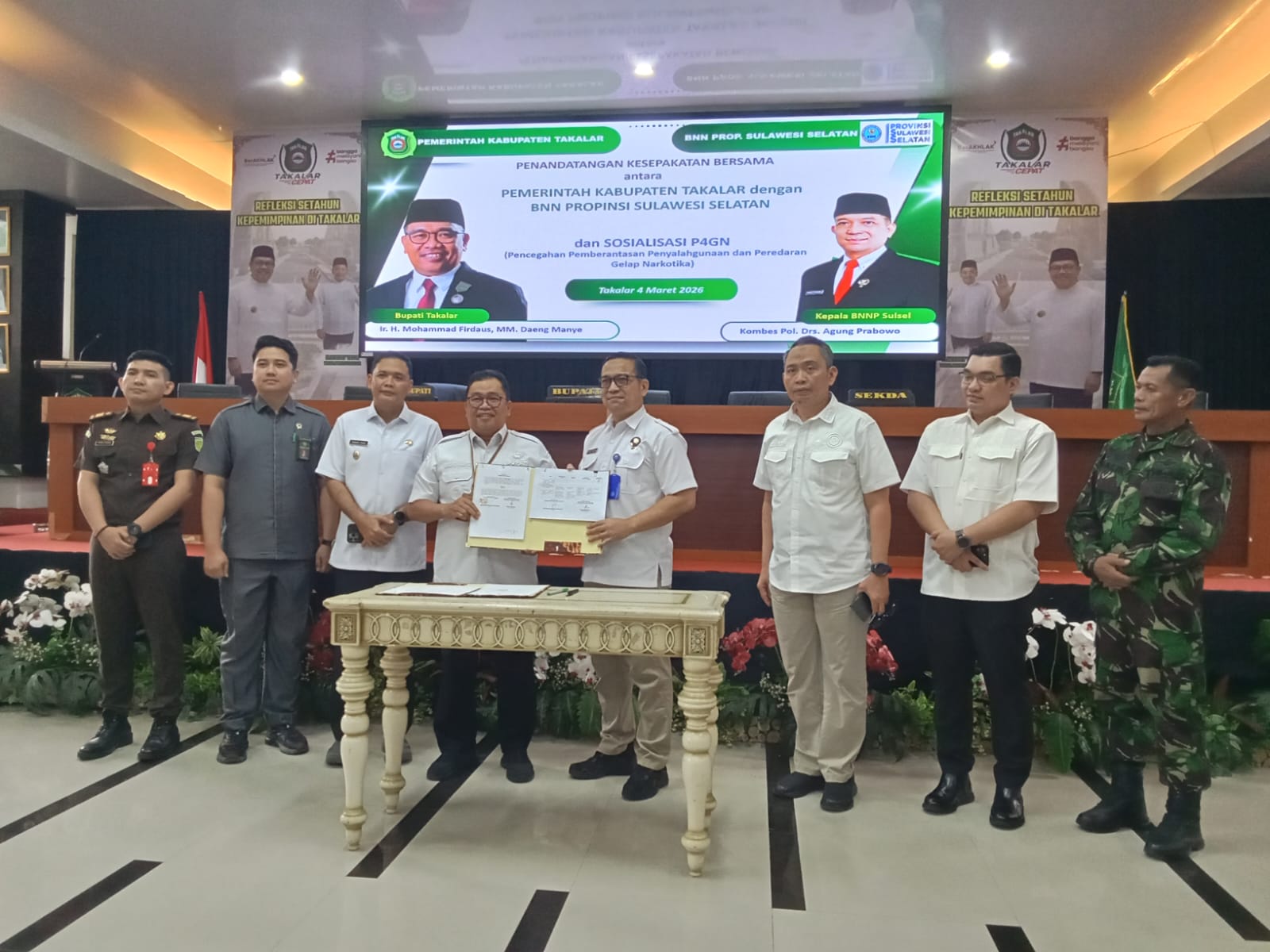 Penandatanganan dilakukan langsung oleh Bupati Takalar, Mohammad Firdaus (Daeng Manye), bersama Kepala BNNP Sulsel, Kombes Pol Agung Prabowo, disaksikan jajaran Forkopimda, Wakil Bupati, Sekda, Kepala OPD, Camat, serta Lurah se-Kabupaten Takalar.