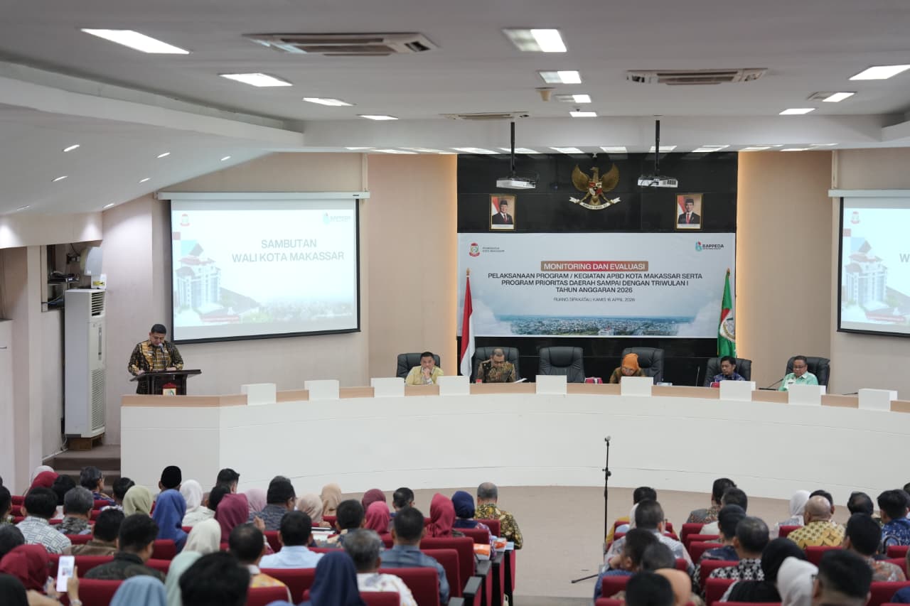 Penegasan tersebut disampaikan Munafri saat menghadiri Rapat Monitoring dan Evaluasi (Monev) Pelaksanaan Program/Kegiatan APBD Kota Makassar serta program prioritas daerah hingga triwulan I, yang berlangsung, di Ruang Sipakatau, Kantor Balai Kota Makassar, Kamis (16/04/2026).