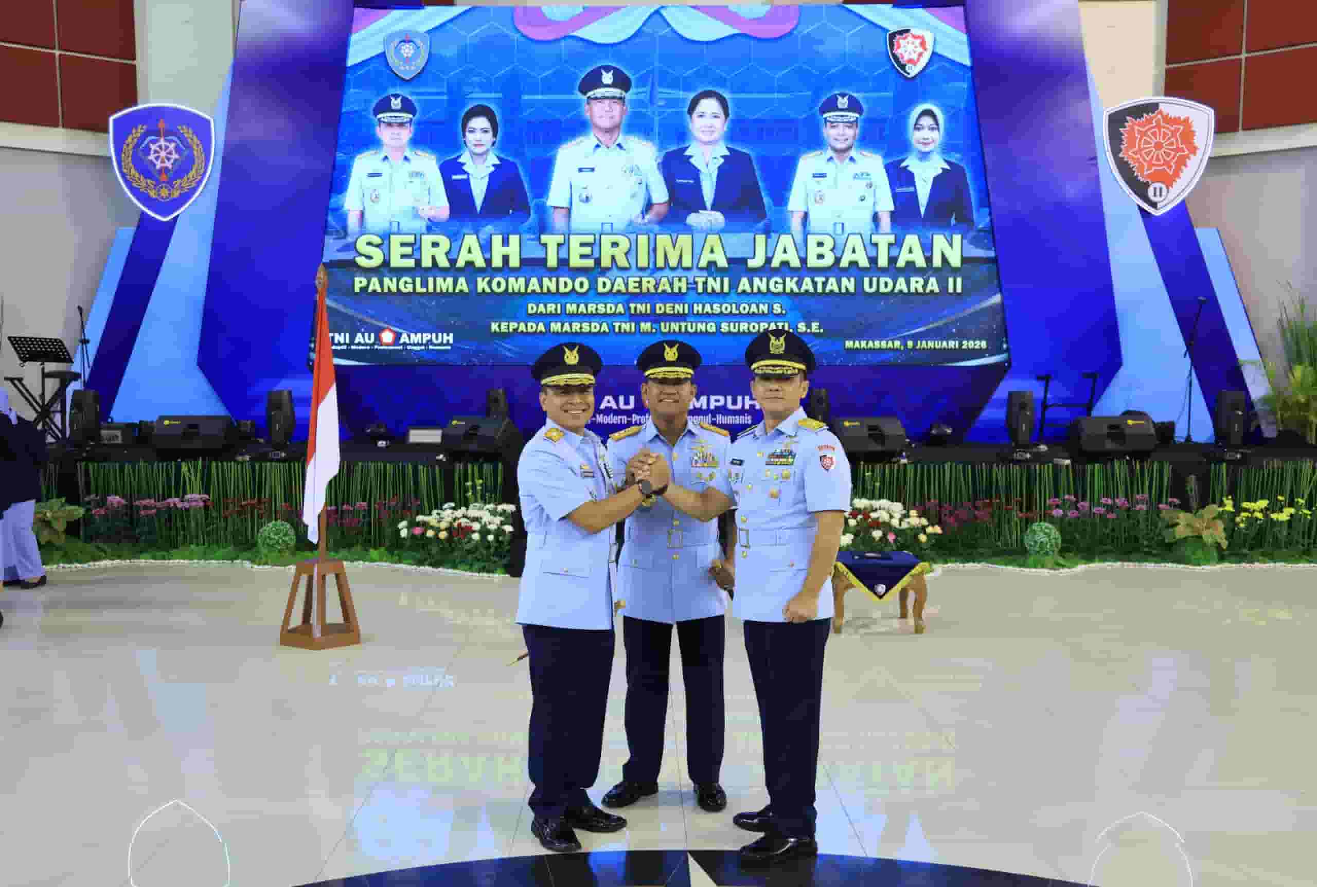 Makassar, Mapress.co.id – TNI Angkatan Udara melaksanakan upacara Serah Terima Jabatan (Sertijab) Panglima Komando Daerah TNI Angkatan Udara (Kodaud) II yang digelar di Markas Kodaud II, Jalan Perintis Kemerdekaan KM 15, Makassar, Jumat (09/01/2026).