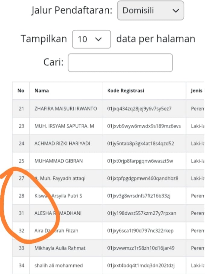 Berdasarkan pengecekan mandiri yang dilakukan melalui aplikasi SPMB, ditemukan beberapa kejanggalan dalam urutan penerimaan siswa.