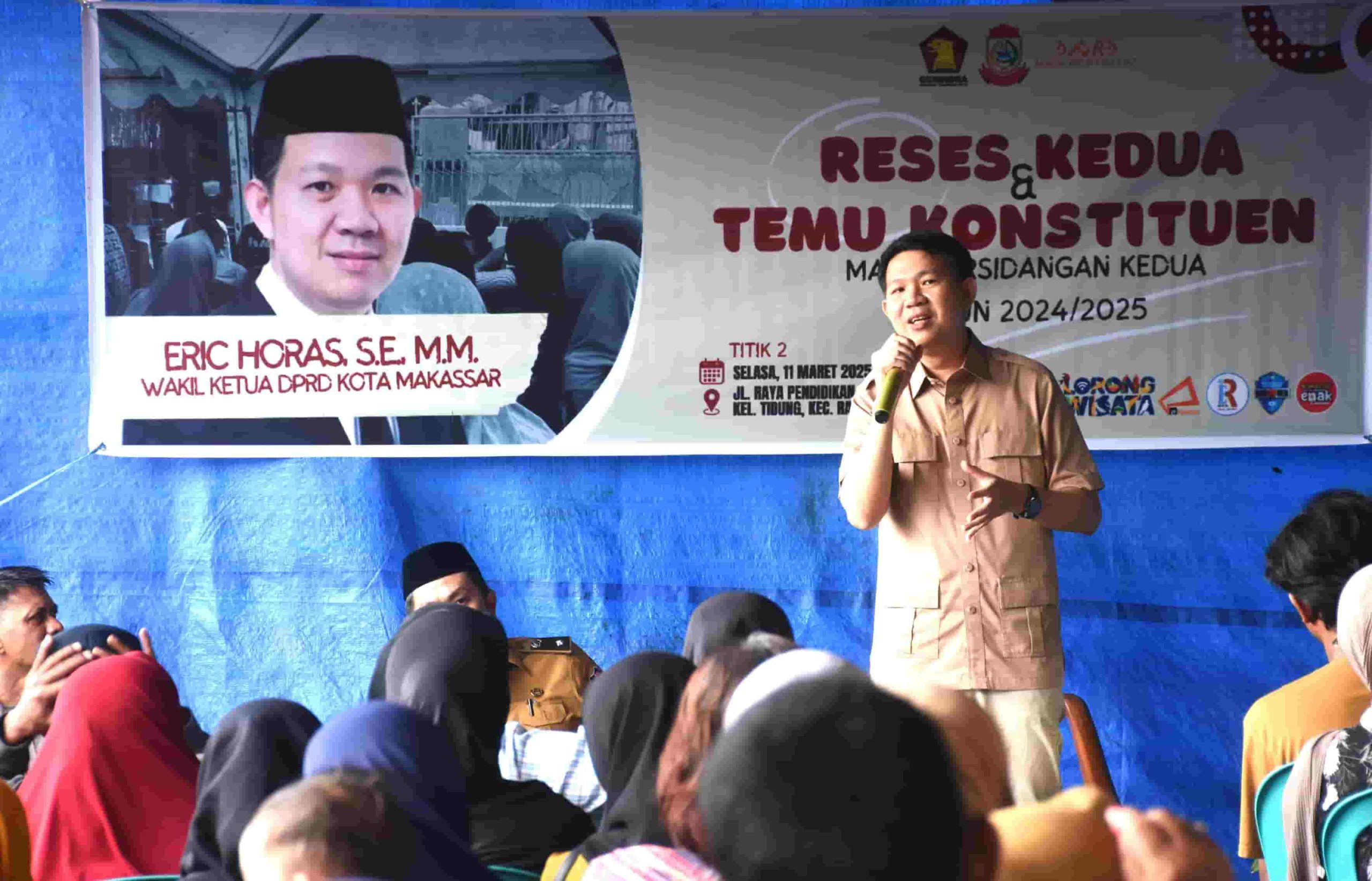 Eric (sapaan akrab) Eric Horas menggelar reses yang merupakan bagian dari tugasnya sebagai Anggota DPRD Makassar. Dalam agenda ini, warga dipersilahkan untuk menyampaikan keluhannya.