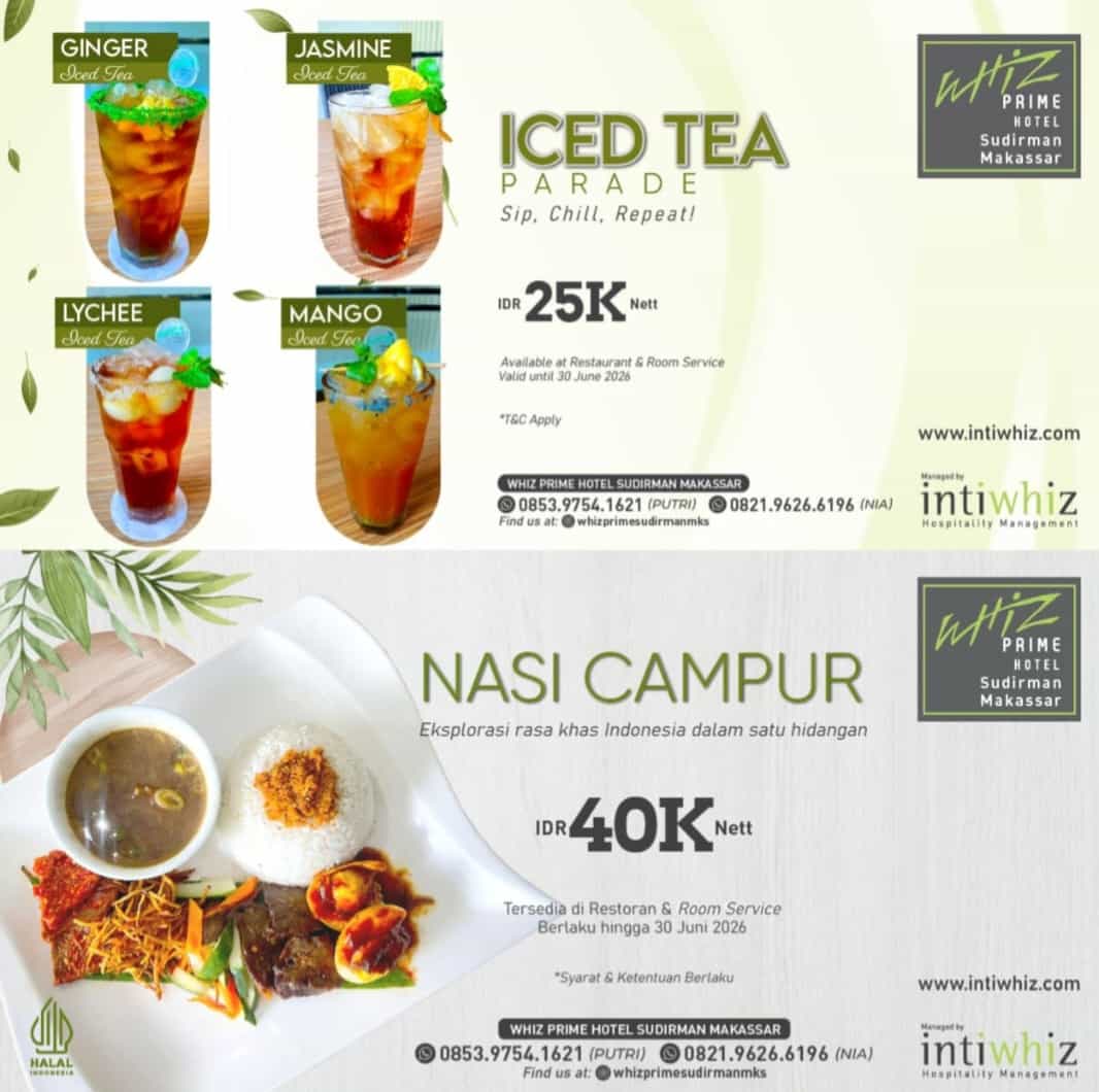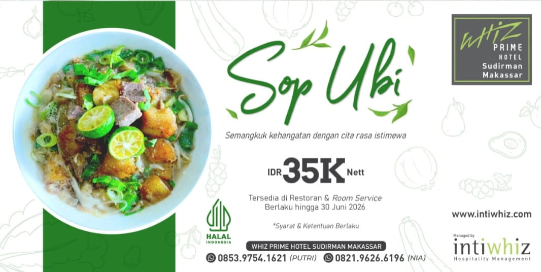 Program “Menu Tradisional Makassar” ini berlangsung mulai April hingga Juni 2026. Berlokasi strategis di pusat Makassar, hotel yang dikelola oleh Intiwhiz Hospitality Management ini terus berkomitmen menghadirkan layanan yang nyaman bagi pelancong bisnis maupun wisatawan.